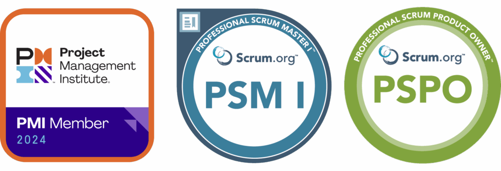 • Project Management Professional (PMP) des Project Management Institute (PMI), 2008 und 2024